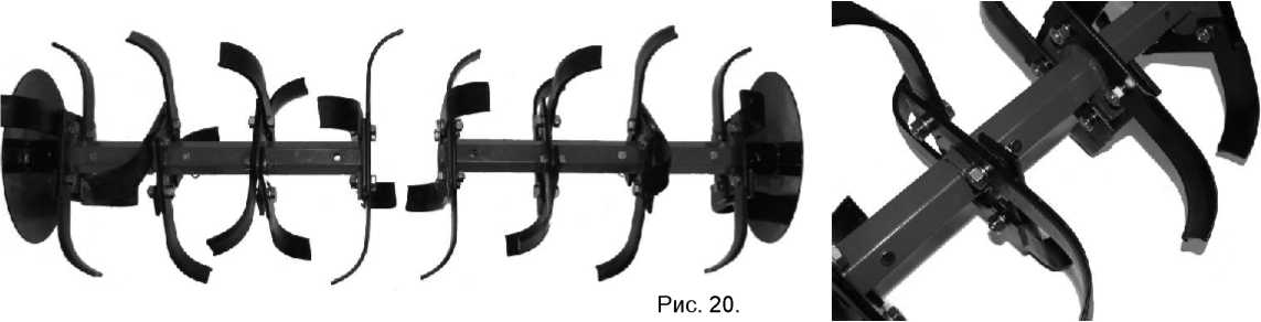 Фрезы. На данную модель установлены фрезы диаметром 33 см, что позволяет обрабатывать землю на глубину до 23 см. Ширина обработки земли за один проход (полоса вскапывания) равна 43 см.