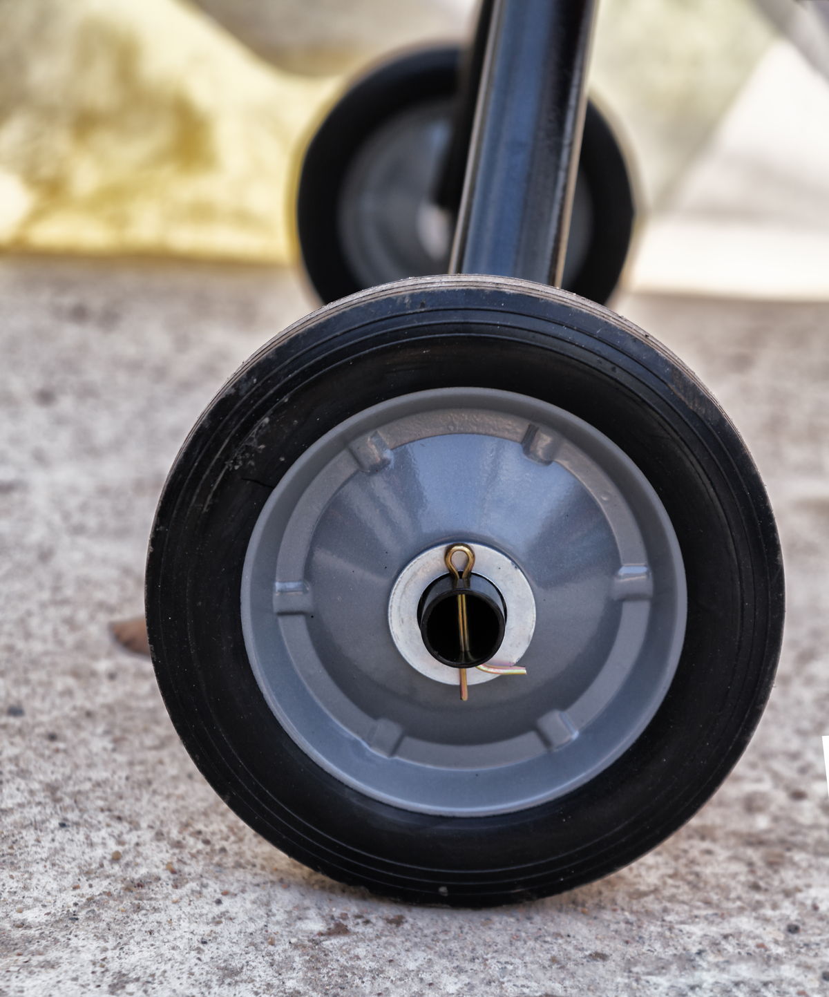 - Пара колес на стальных дисках обеспечивает легкую транспортировку и хорошую устойчивость;