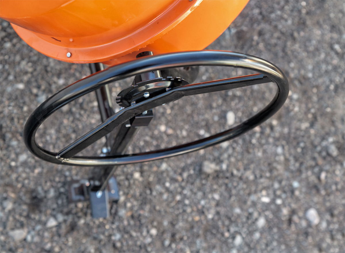 - Пара колес на стальных дисках обеспечивает легкую транспортировку и хорошую устойчивость;