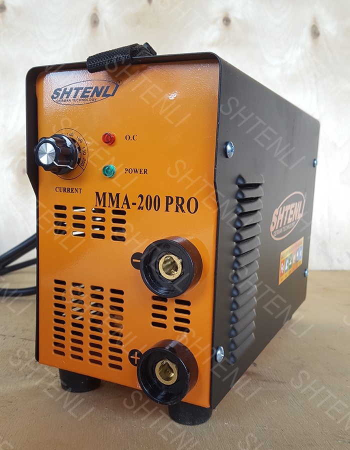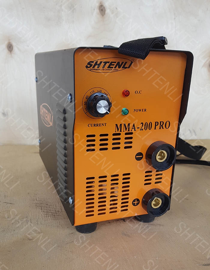 Аппарат ручной дуговой сварки инверторного типа Shtenli MMA 200 PRO. Настоящий аппарат является преобразователем переменного электрического тока в постоянный для дуговой сварки при помощи транзисторного моста с нормальной частотой 70 кГц. Специфической характеристикой данной системы (ИНВЕРТОР) является высокая скорость и наилучшее качество результата сварочных работ при помощи обычного электрода. Инверторная система регулирующая входное напряжение, позволяет значительно снизить реактивное сопротивление, а так же вес и объем устройства, что увеличивает мобильность. Аппарат объединяет в себе блоки и устройства, которые разработаны по специальной технологии увеличивающей надежность и безопасность.
