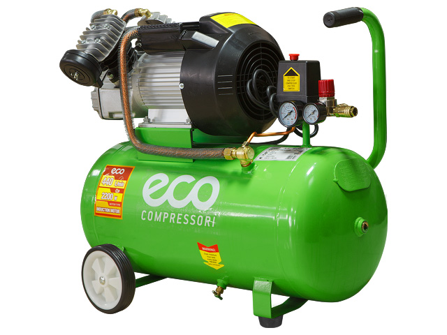 Воздушный маслянный двухпоршневой компрессор ECO AE-502-1 - оптимальное решение для загородного дома, личного гаража, небольших мастерских и для частных строительных бригад.