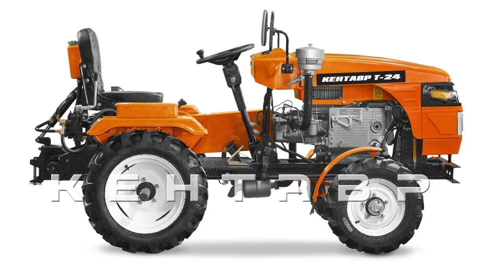 Кентавр Т-24 оснащен блокирующимся дифференциалом. Он обеспечивает маневренность, минимальный радиус разворота, снижает износ шин при движении по дорогам, а также позволяет минимизировать пробуксовки при почвообработке.