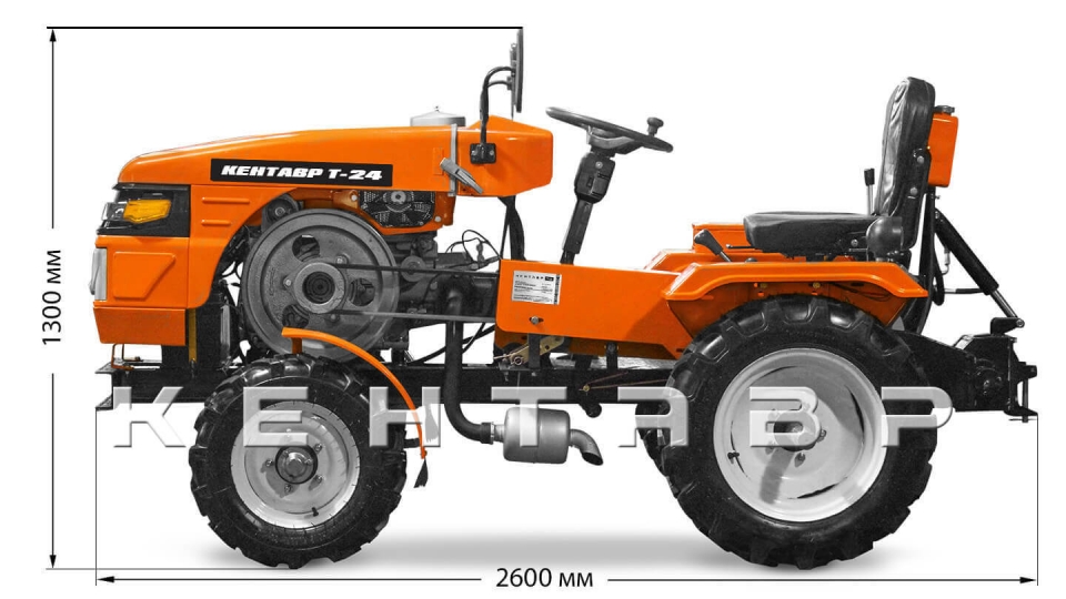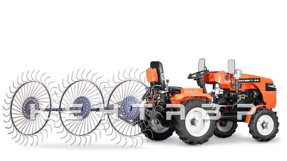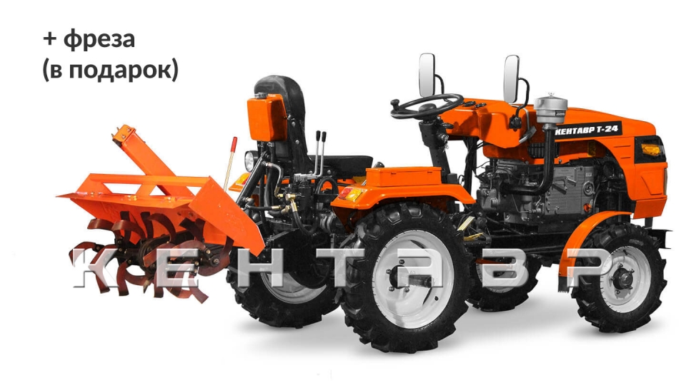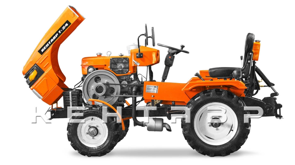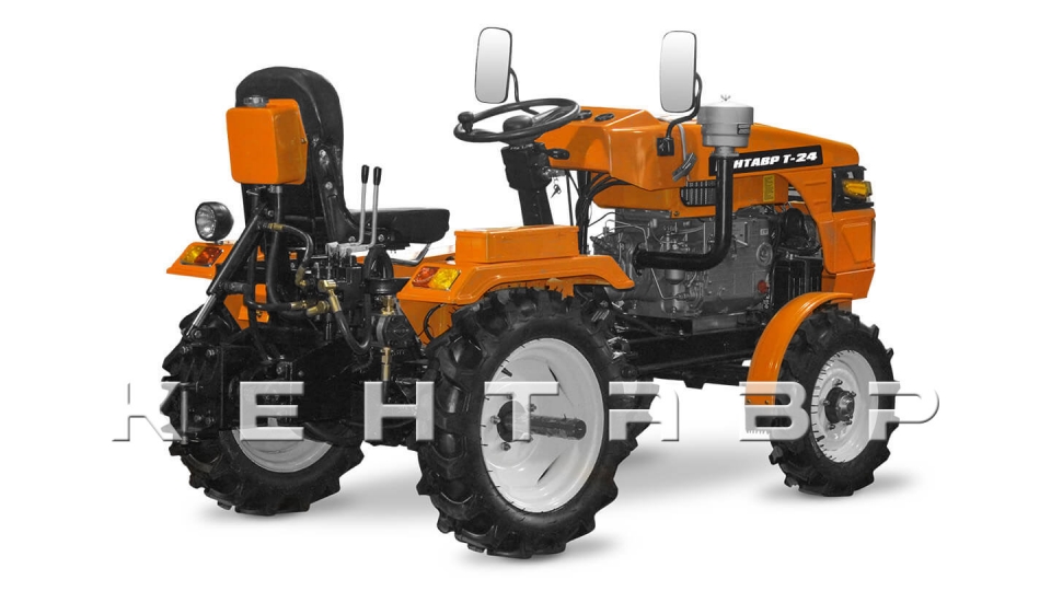Кентавр Т-24 самый мощный мини-трактор на базе мотоблока. Отличается от младших моделей увеличенными колесами, двух контурной гидравликой.