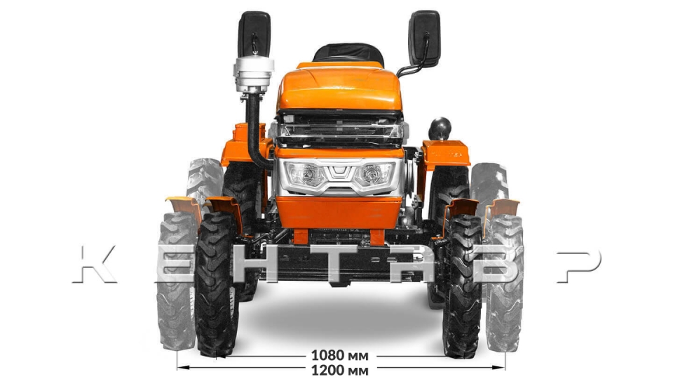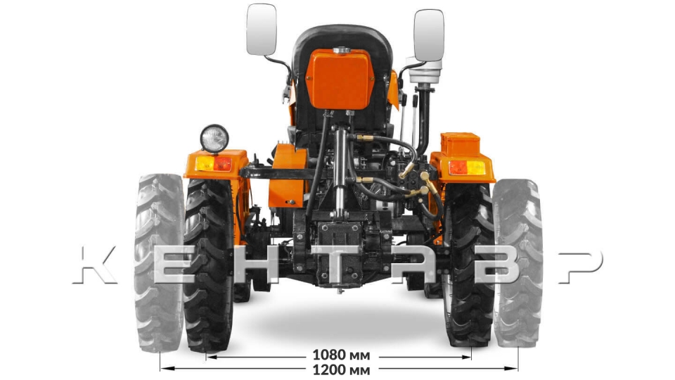 Задняя и передняя колея в данном тракторе регулируются. При установке колеи в 1080 мм он обретает повышенную маневренность. При установке колеи в 1250 мм трактор идеально подходит для рядной обработки культур. Регулировку колеи можно осуществить самостоятельно благодаря предусмотренным в тракторе удлиненным валам и универсальным ступицам.