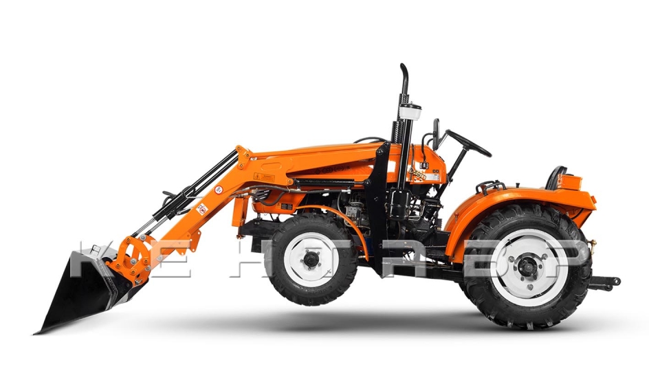 Передний привод подключаемый, не постоянный. Минитрактор оборудован передним качающимся мостом с бортовыми редукторами, что обеспечивает увеличение агротехнического просвета и уменьшение размеров картера главной передачи.