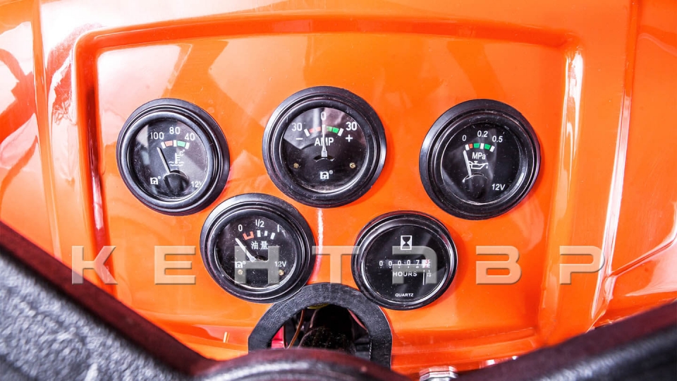 На приборной панели есть все необходимые датчики, позволяющие контролировать работу основных узлов: счетчик моточасов, амперметр, датчик давления масла, датчик температуры охлаждающей жидкости, а также датчик уровня топлива.