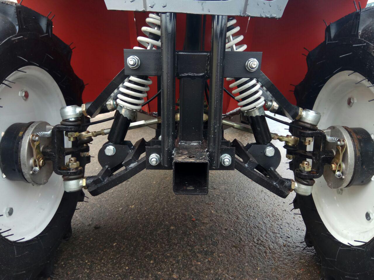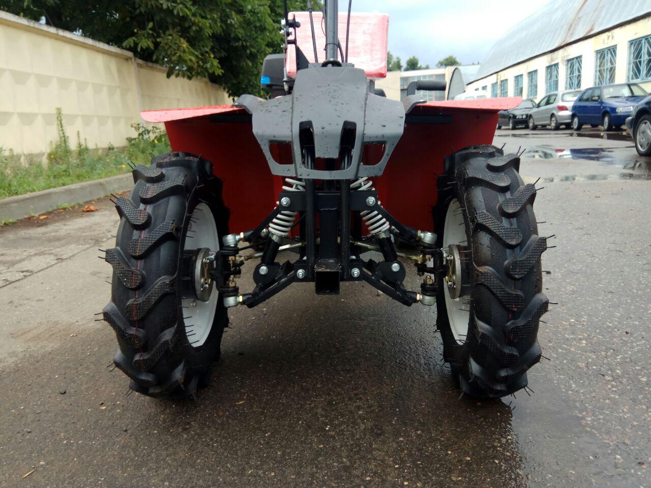 Пневматические колеса со специальным протектором обеспечивают высокую проходимость агрегата (при использовании колес 7×12 и больше отпадает необходимость в грунтозацепах);