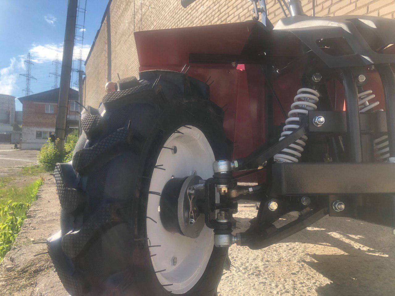Мощные пневматические колеса размером 6,0х12 увеличивают устойчивость культиватора. Высокий протектор шин позволяет использовать надежный мотоблок