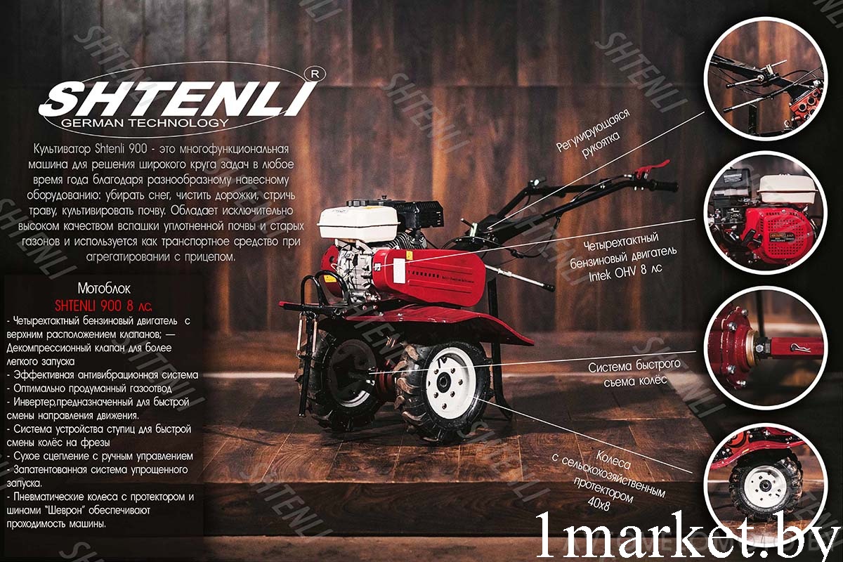Культиватор Shtenli 900 (8 л.с., 4x8, поворотные ступицы)