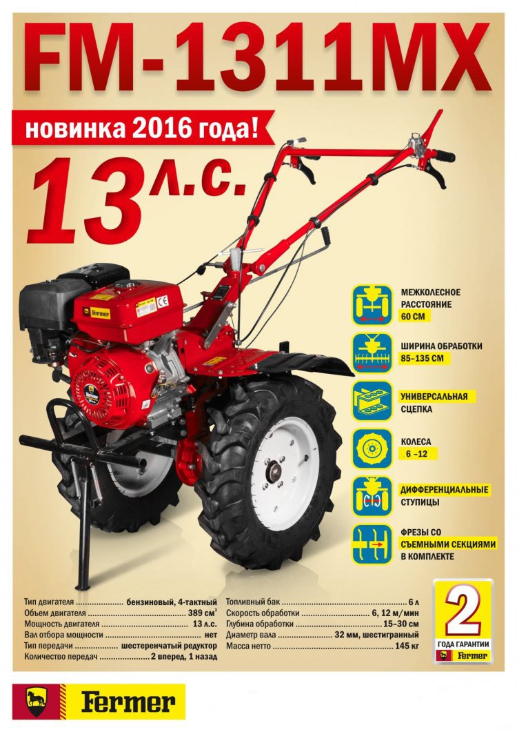 Преимущества и отличия мотоблока FERMER FM-1311MX: