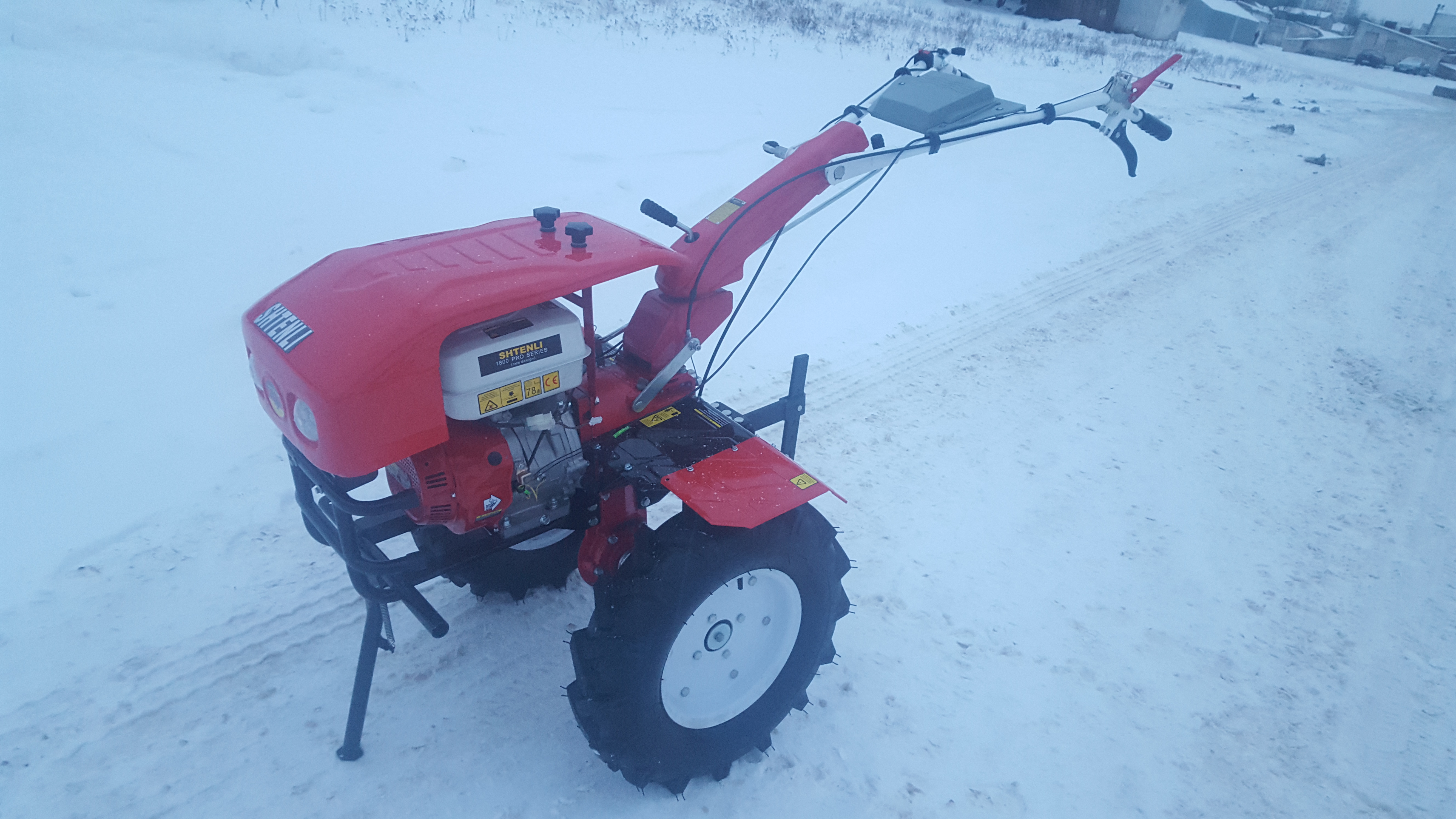 Максимальная комплектация для данной серии агрегатов. «Из коробки» Вы сразу получаете огромные колёса, самый мощный двигатель, культивирующие фрезы, универсальную сцепку, фару для работ в вечернее время и, как приятное дополнение, удобный бардачок на ручке. Так же в комплекте идет специальная защита на колеса, которая защищает фермера от земли и грязи.