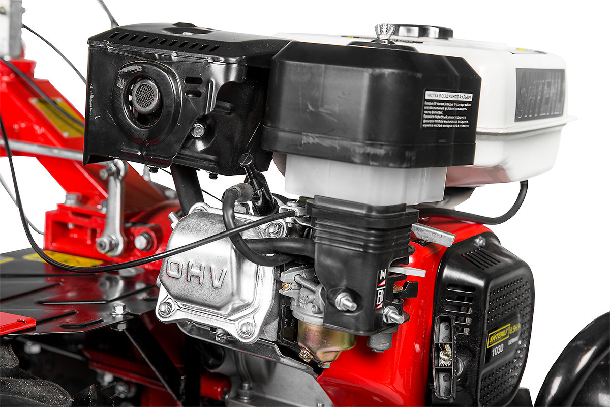 Четырехтактный двигатель OXV GX 260 (аналог хонда) на 8,5 лошадиных сил, делает мотоблок еще надежнее.